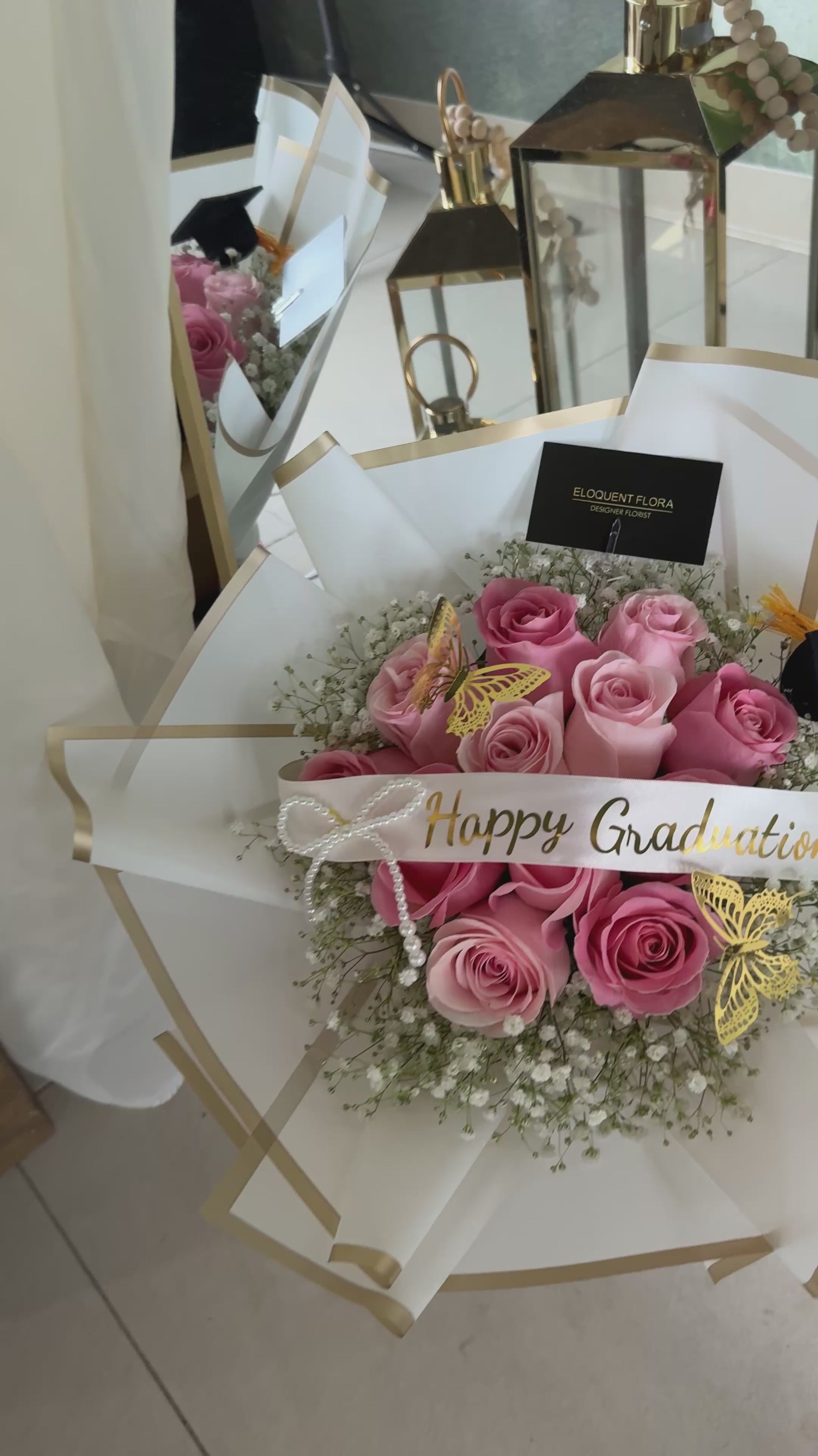 Mark this special achievement with an elegant dozen roses in your choice of classic red or soft pink, paired with a festive "Happy Graduation" banner and charming graduation hat. Each bloom represents admiration and pride in their accomplishment, while the coordinating decorations add a celebratory touch. Perfect for honoring graduates across all milestones—from high school to university to career advancement. This versatile gift combines timeless floral elegance with graduation spirit, creating a memorable present they'll treasure.